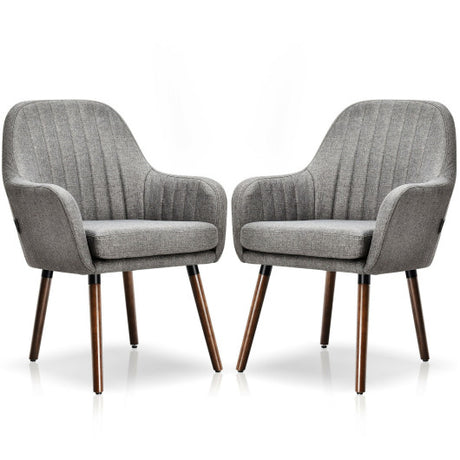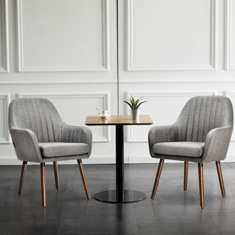 Set of 2 Fabric Upholstered Accent Chairs with Wooden Legs-Gray