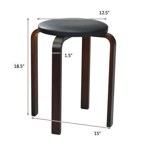 Set of 4 Bentwood Round Stool Stackable Dining Chairs with Padded Seat-Black