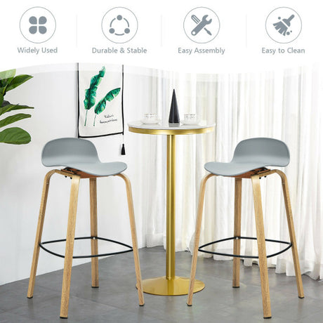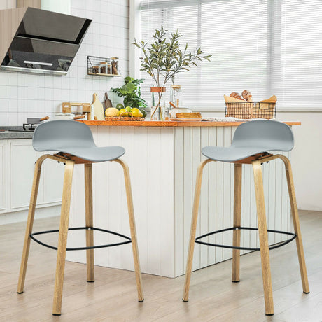 Set of 2 Modern Barstools Pub Chairs with Low Back and Metal Legs-Gray
