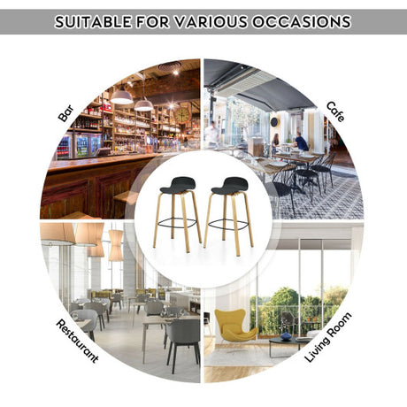 Set of 2 Modern Barstools Pub Chairs with Low Back and Metal Legs-Black