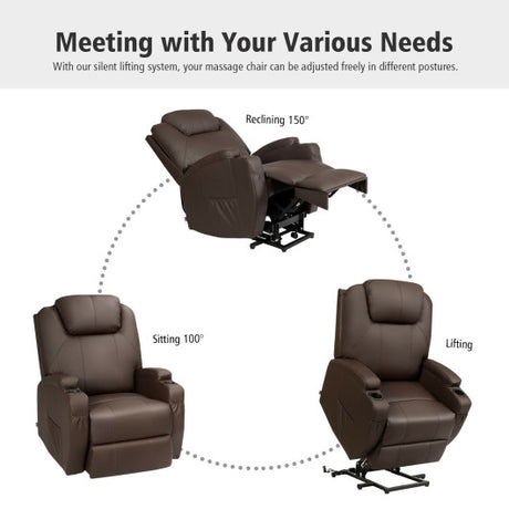 Power Lift Recliner Chair with Massage and Heat for Elderly with Remote Control-Brown