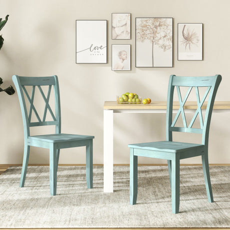 Set of 2 Cross Back Rubber Wood Dining Chairs-Green