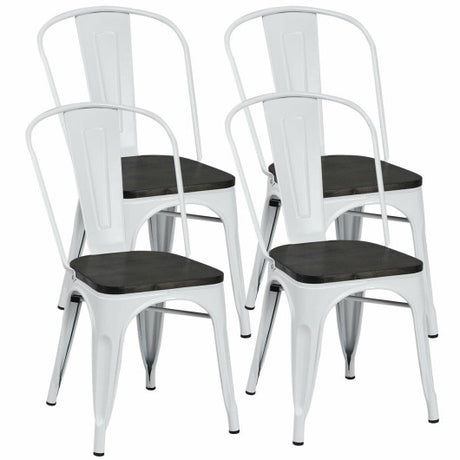 4 Pieces Tolix Style Metal Dining Side Chair Stackable Wood Seat-White