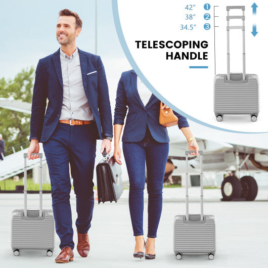 16 Inch Under-seat Carry On Luggage with Spinner Wheels and Laptop Compartment-Sliver