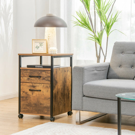 2 Drawer Mobile File Cabinet Printer Stand with Open Shelf for Letter Size-Rustic Brown