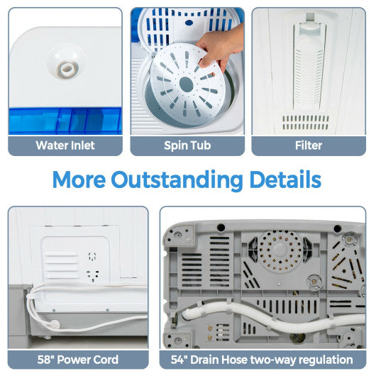2-in-1 Portable 22lbs Capacity Washing Machine with Timer Control-Blue