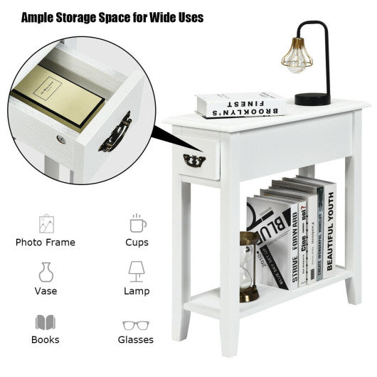 2 Pieces 2 Tier Sofa Side End Table with Drawer and Open Shelf-White