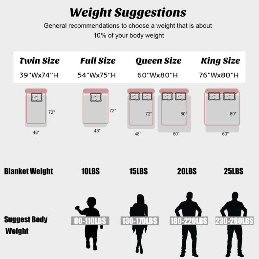 ● Natural Sleep Support: Engineered for those who have sleep problems or feels restless the weighted blanket can give you a gentle feeling of being hugged by love. It fits for body curve perfectly and suitable for any sleeping position which can provide a deep and relaxing sleep for you.
