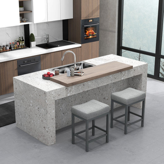 24.5 Inches Linen Fabric Saddle Stools Set of 2 with Cushioned Seat-Gray