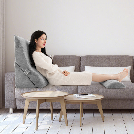 3 Pieces Orthopedic Bed Wedge Pillow Set Adjustable Support for Back Neck-Gray