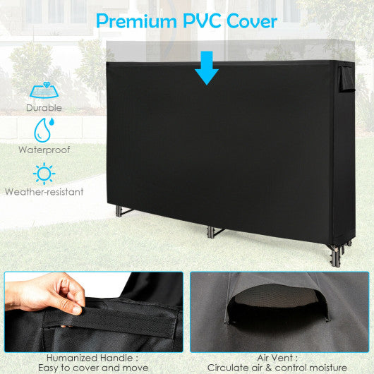 With 25" PVC cover the rack can accommodate 14"-24" long logs and keep them dry when it's rainy. The cover is designed with hoop and loop fastener zipper design elastic belt and convenient buckle helping it to better cover firewood. What's more humanized handle allows for easy carrying. Air vent of the cover and the raised base of the rack ensure air ventilation and moist resistance. Besides the firewood rack made of powder-coated iron tubes is durable rust-resistant and weather-resistant. Its raised base allows for excellent ventilation. Moreover curved edges screw fixation and anti-slip design makes it stable and safe to use.The rack comes with all necessary accessories and easy-to-understand instruction for easy assembly.