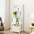 4-tier Leaning Free Standing Ladder Shelf Bookcase-White