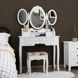 7 Drawer Tri-Folding Mirror Dressing Vanity Makeup Set-White