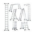 ● 7-in-1 Multi-Purpose Design: This multifunctional ladder with 4 sections can be transformed into 7 different configurations such as straight ladder step ladder scaffold overhang ladder M-shaped ladder and staircase ladder. Thus it will perfectly meet your different demands in daily life whether in outdoor or indoor places.