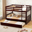 Full over Full Bunk Bed Platform Wood Bed with Ladder-Brown