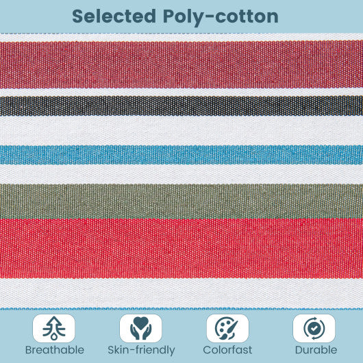 ● Comfy Hammock: The selected poly-cotton material endows this hammock with the advantages of being breathable skin-friendly colorfast and durable. Besides the hand-woven ropes and wood spreader bars ensure extra durability and stability.