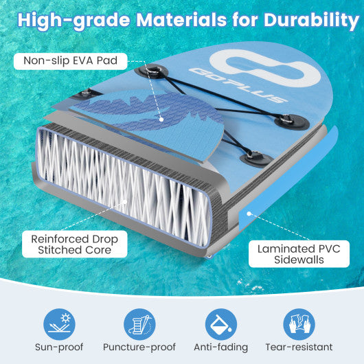 ● High-grade Materials for Durability: Crafted from cutting-edge drop stitch core and reinforced laminated PVC sidewalls the inflatable stand up paddle board is not only tear-resistant but also sun-proof and anti-fading ensuring long-lasting rigidness against various impacts.