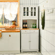 Made of high-quality wood boards and tempered glass this kitchen cupboard is very durable and stable which promises a long service life.
