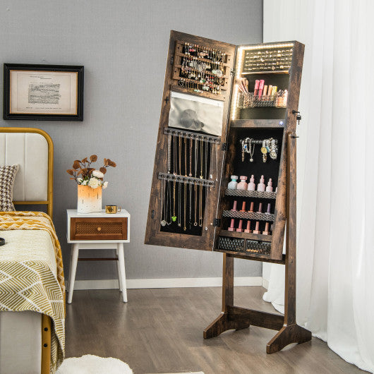 Lockable Jewelry Armoire Standing Cabinet with Lighted Full-Length Mirror-Rustic Brown