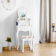 Makeup Dressing Table and Bench 3 Drawers and Cushioned Stool for Girls-White
