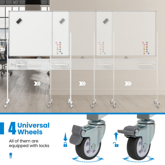 Mobile Whiteboard Adjustable Double-Sided Magnetic Board with Pegboard-White