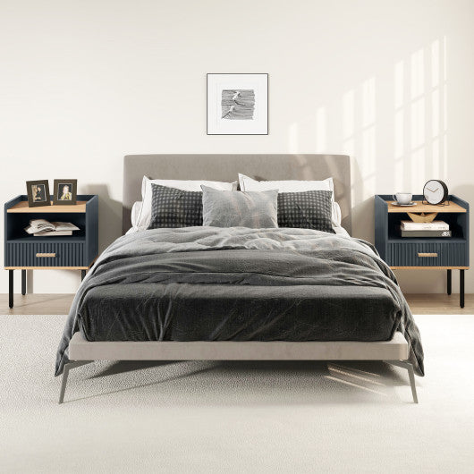 Nightstand Bedside End Table with Drawer and Shelf for Living Room Bedroom-Set of 2