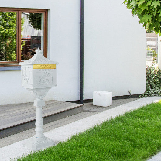 Retro Cast Aluminum Mailbox Security Postal Letter Box with Baffle Door-White