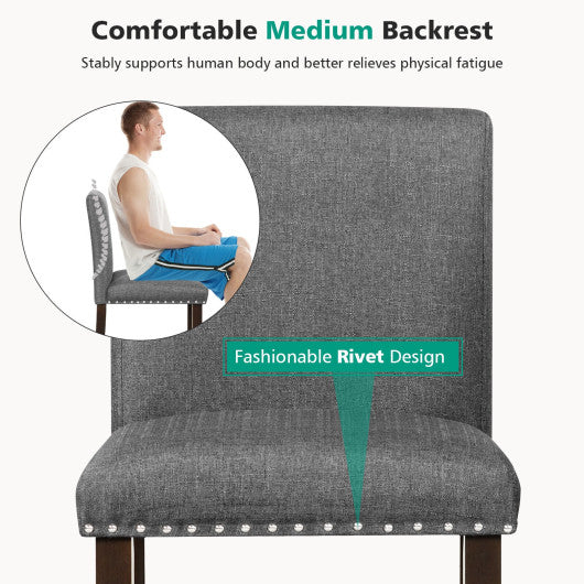 The backrest and seat are filled with sponge and covered with linen fabric. Both materials are fairly soft and breathable enabling guests to enjoy great comfort. Also each bar stool's stability is perfectly ensured. Protective non-slip pads gain good balance and avoid floor scratches. The overall weight capacity is up to 245 lbs. Meanwhile designed with 25.5" high seat and 7" high footrest our bar stools with rivet provide spacious space for feet stretching. For various needs each 19" x 20" x 39" bar stool is ideal for kitchen dining room bar cafe party room and more.