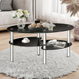 Tempered Glass Oval Side Coffee Table-Black - Black is backordered and will ship as soon as it is back in stock.