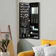 Full Length Mirror Jewelry Cabinet with Ring Slots and Necklace Hooks-Black